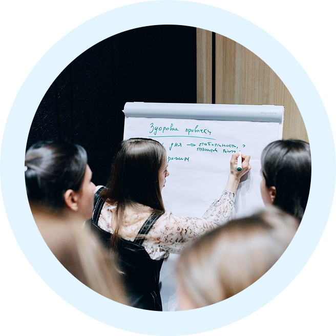 Работа в тройках, мастермайнды с врачами, групповые разборы, совместные практикумы по планам питания